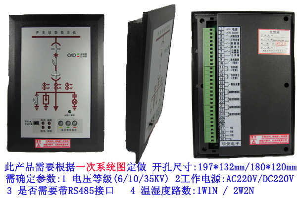 開(kāi)關(guān)狀態(tài)指示儀集成了一次回路模擬圖、斷路器位置、開(kāi)關(guān)狀態(tài)、接地閘刀位置、彈簧儲(chǔ)能狀態(tài)、高壓帶電指示、高壓帶點(diǎn)閉鎖及溫、濕度控制等多功能于一體,指示功能可分可合,用戶(hù)選用時(shí)只要提供一次方案圖即可。另外產(chǎn)品還可以根據(jù)用戶(hù)的要求實(shí)現(xiàn)回路電量參數(shù)及溫、濕度等控制功能產(chǎn)品一體化布局配套裝備于開(kāi)關(guān)柜,這將簡(jiǎn)化過(guò)去開(kāi)關(guān)柜的面板布局。它將取代現(xiàn)有的一次回路模擬指示牌、電磁式開(kāi)關(guān)狀態(tài)指示器、接地指示器等多種控制、指示裝置,同時(shí)選配通訊功能,可將所有開(kāi)關(guān)狀態(tài)和溫濕度情況上傳至監(jiān)控中心